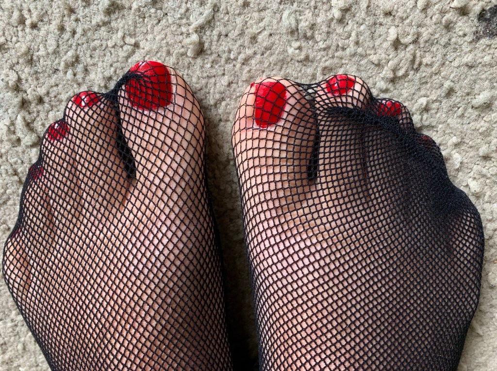Red nails and fishnets…
